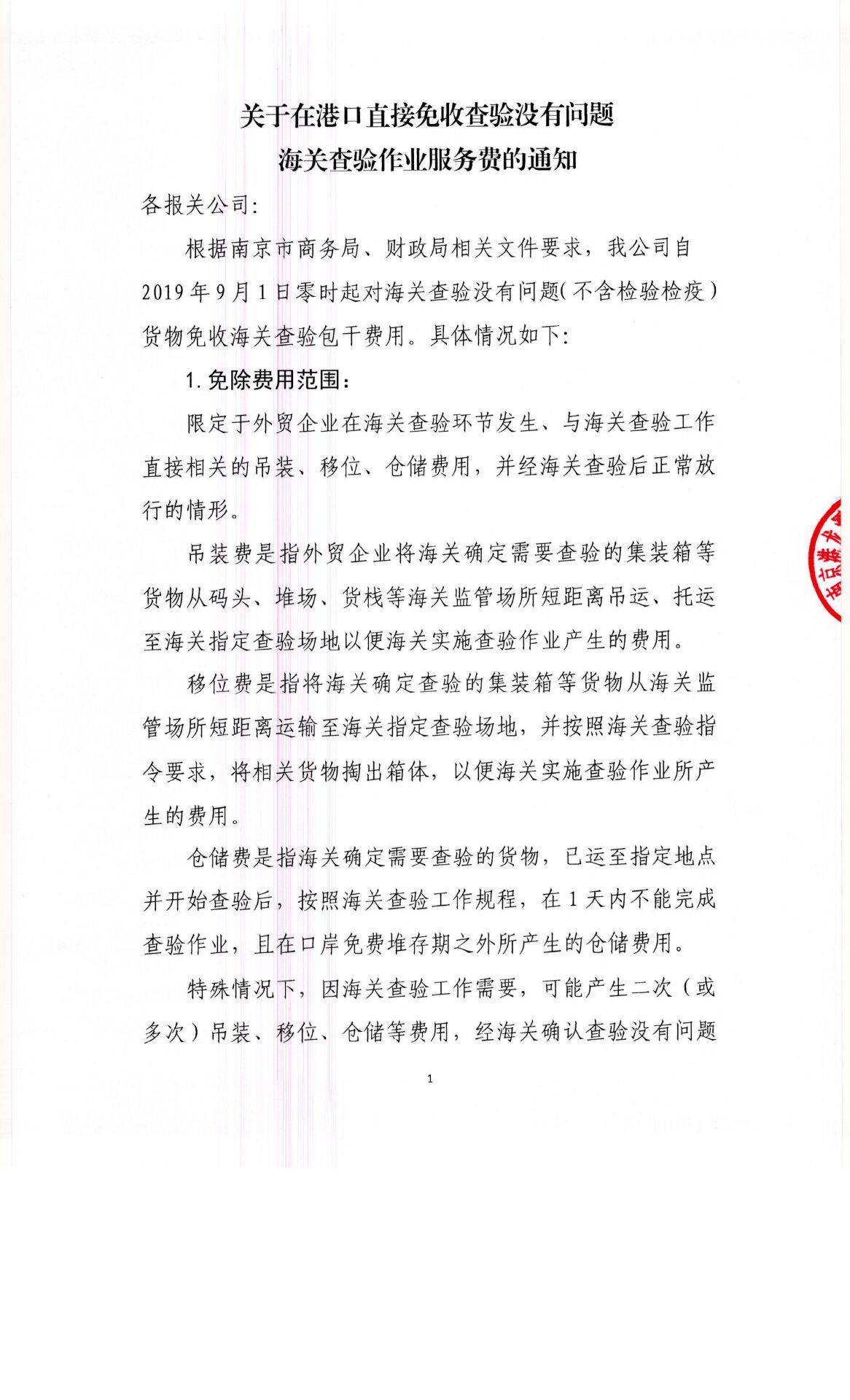 关于在港口直接免收查验没有问题海关查验作业服务费的通知!